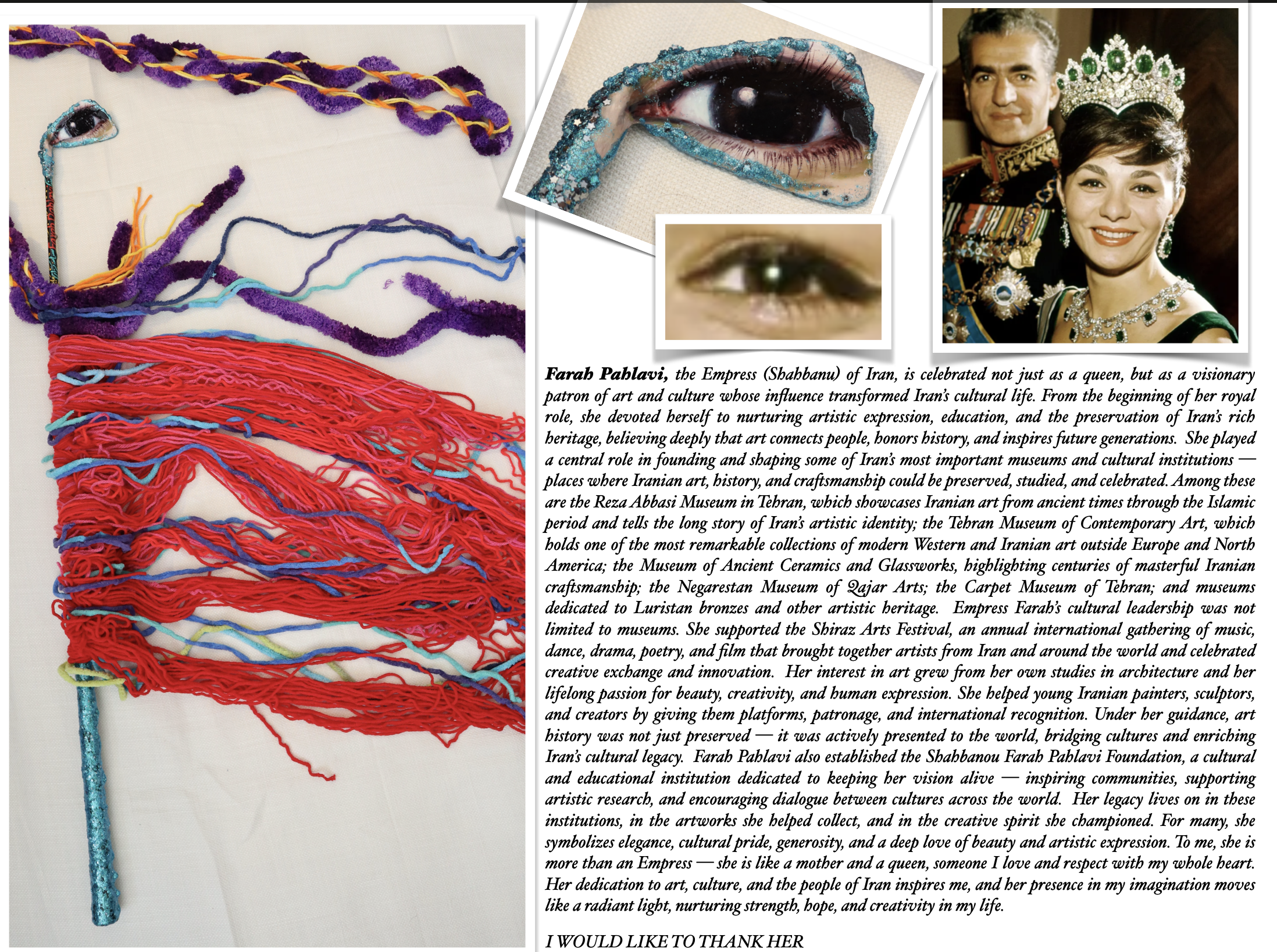 My name is Marzieh Jamili. I am a Persian American artist, originally from Kashmir, a small religious town near the Afghanistan-Iran border. My childhood and adolescence were defined by hard work in my father’s grocery store and farm, as well as experiences of physical punishment and adversity. Despite the cultural norms restricting girls in my family from education and creativity, I was fortunate to attend school, where I secretly nurtured a love for music, literature, and art.